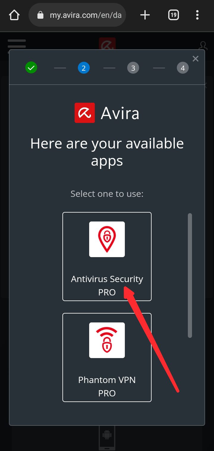 • Select your device from the listed available device then click on Antivirus Security Pro to download. If you only need Avira VPN, Download Phantom VPN Pro.
