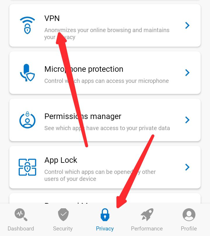 Premium VPN — To use Avira premium VPN, Open your Avira Apk and click on Privacy. Tap on VPN, select your preferred country then click on Turn On. Other way is to download Avira Phantom Pro VPN & Login.