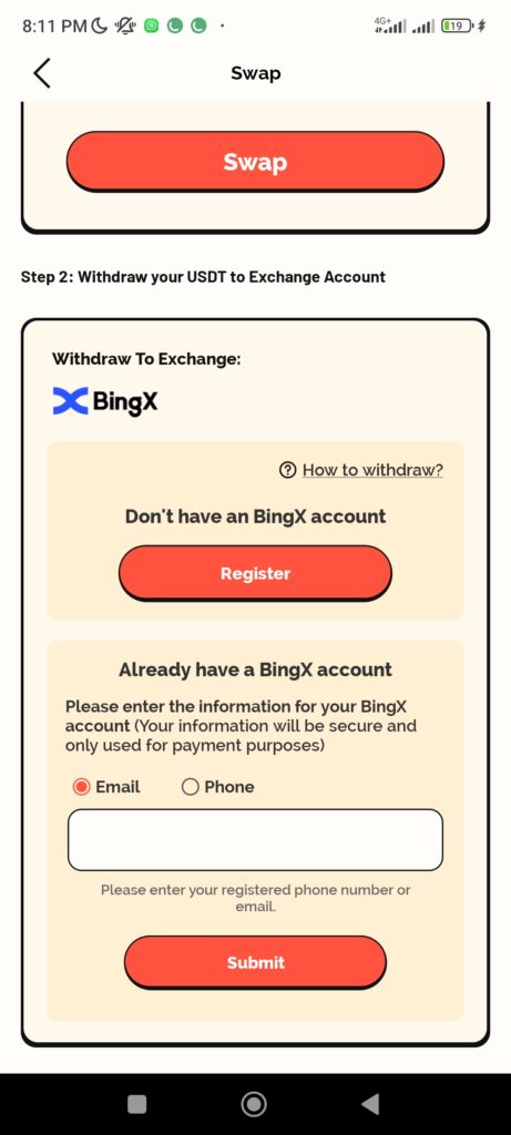 Scroll down and click on Register, you would be redirected to the registration page. Click on login then enter the same details you used previously on BingX app. Enter the email then click submit.