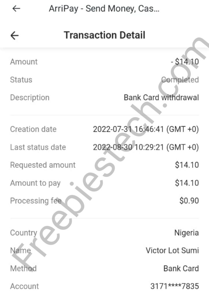 Once linked, Tap on Withdraw. The money will be transferred into your Arripay Wallet, login to your Arripay account and withdraw the money into your Local Bank Account, PayPal or Epay.