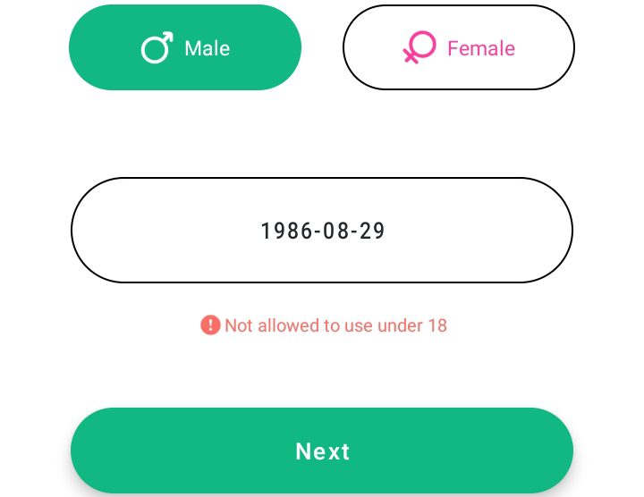 - Select your Gender, fill in your DOB then tap on Next & Create a Nickname.