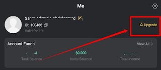 It is advisable to upgrade to at least VIP 1 which is silver in other to earn big daily through commission and task performed daily.