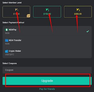 If you have tested the platform with the free membership plan and decided to upgrade your account in order to earn more and real money, kindly follow the instruction below to do so;