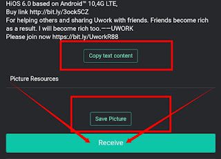 4. On the next page, you will see three buttons there, click on the copy text button to copy the text of the sponsored post, click on the save picture button to save the picture and finally click on the received button as shown in the screenshot below.