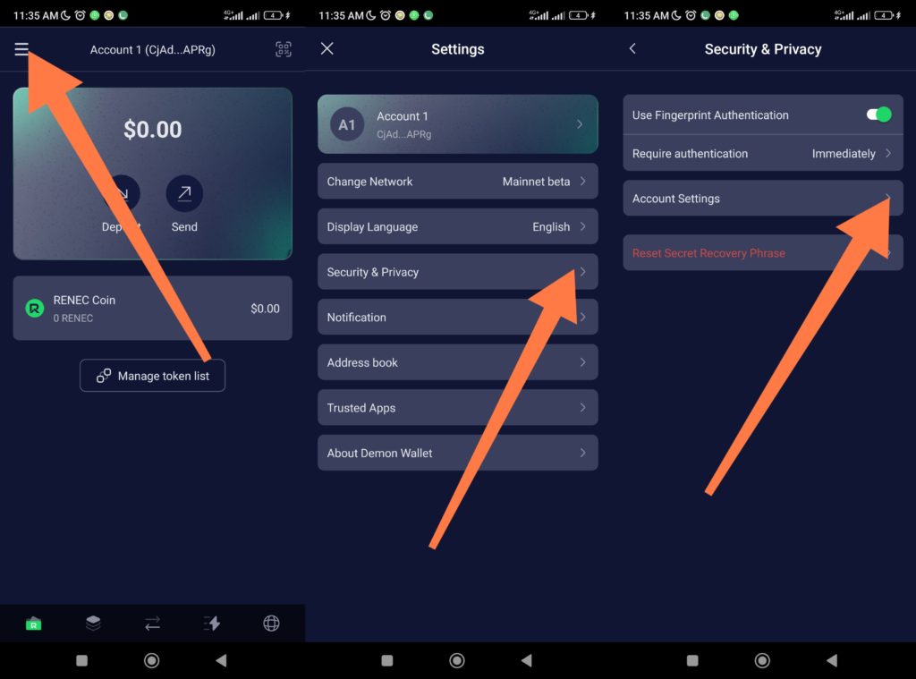 Once your account is verified, you’ll get $1 (1 Renecid) credited to your Demon Wallet. If it doesn’t show up right away, go back to the Demon Wallet Menu, tap on Change Network and switch to Testnet, then switch back to Mainnet Beta and it should reflect on your dashboard. Old users can just go directly to changing Network to see the bonus.