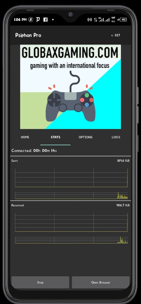 - On your Smile 4g Data then tap on Start Button on Psiphon Pro Vpn