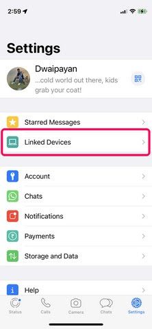 - Head to the Settings (from the bottom navigation bar on iOS and by tapping the three-dot menu in the top right corner on Android) in WhatsApp and select the “Linked Devices” option.